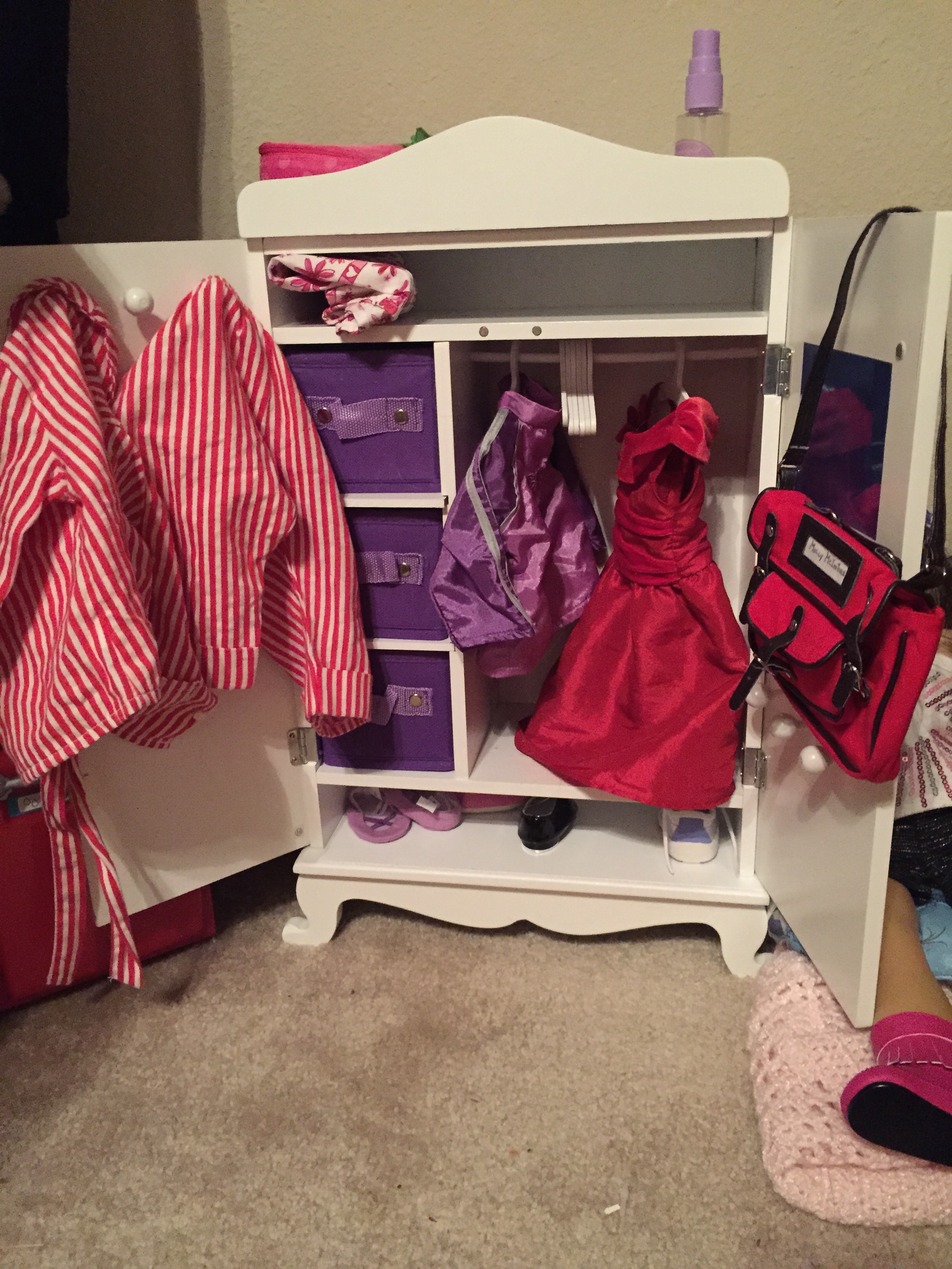 It started almost immediately, when Evan casually blurted out, “I already miss Olivia.” We humored him, but the truth is, I already missed Olivia too. And I almost lost it when my mind started wandering on our ride home and somehow fast forwarded to eight years, when I fully expect we will be dropping her off for her first semester at NYU (fortunately for her, it probably won’t be 96 degrees like it was in Utopia yesterday). As we arrived back home, I felt an uncontrollable urge to hang out in her room and assemble a doll armoire that has been sitting on her floor since Christmas 2013. Finished it tonight!